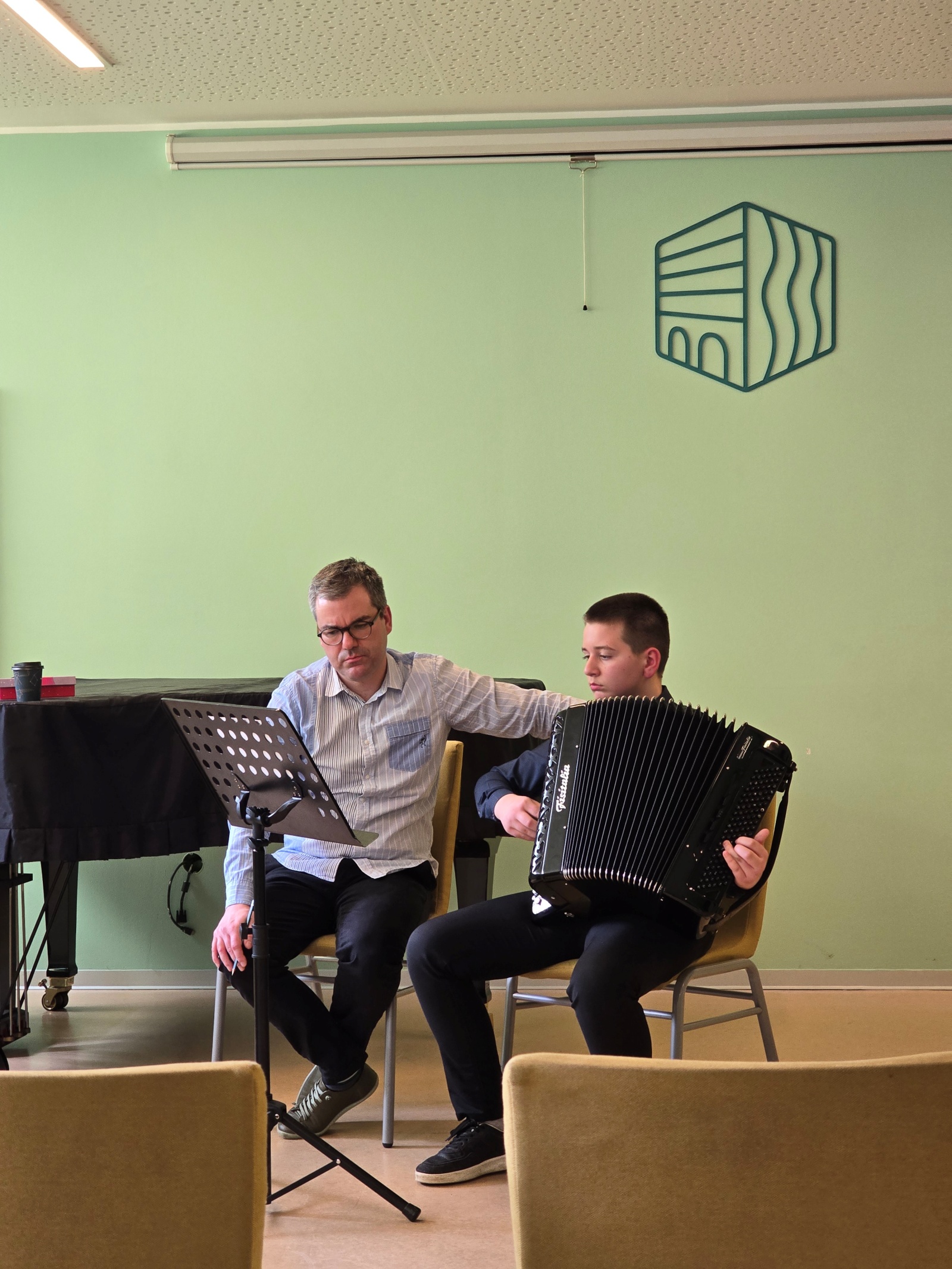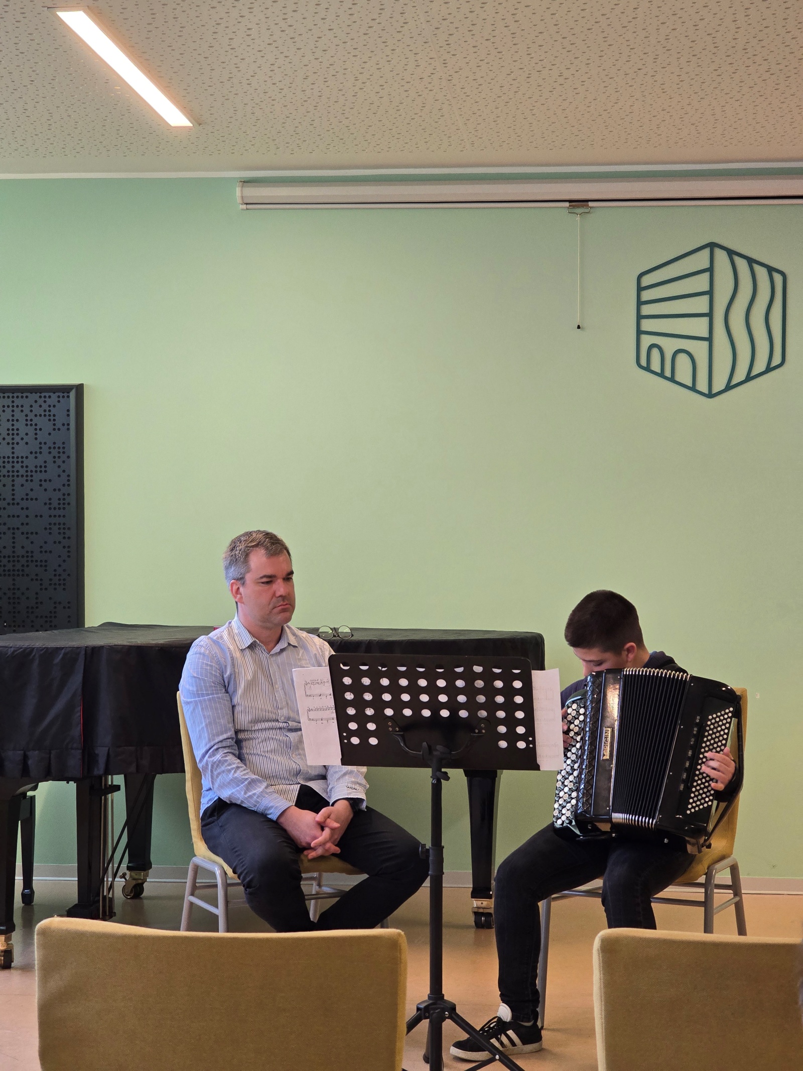 13. i 14. ožujka u Zelenoj dvorani naše škole održan je seminar gostujućeg profesora Mirana Vaupotića za harmonikaše. Profesor Vaupotić je u dva intenzivna dana radio s učenicima osnovne i srednje škole kroz individualne sate, rad s komornim sastavom i harmonikaškim orkestrom.