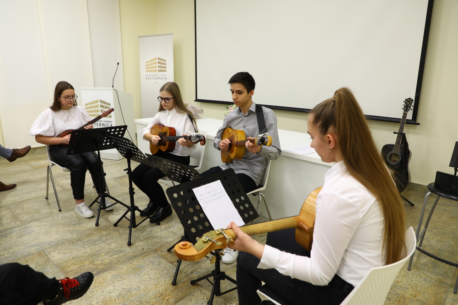 Dana 17. prosinca 2021. godine učenici Područnog odjeljenja Pleternica sudjelovali su na otvorenju izložbe slika autorice Ružice Rudež. Izložba je održana je u Gradskoj knjižnici u Pleternici, a učenici Glazbene škole obogatili su sjednicu svojim umjetničkim točkama. Nastupali su: solist Marko Pavić i Tamburaški kvartet.