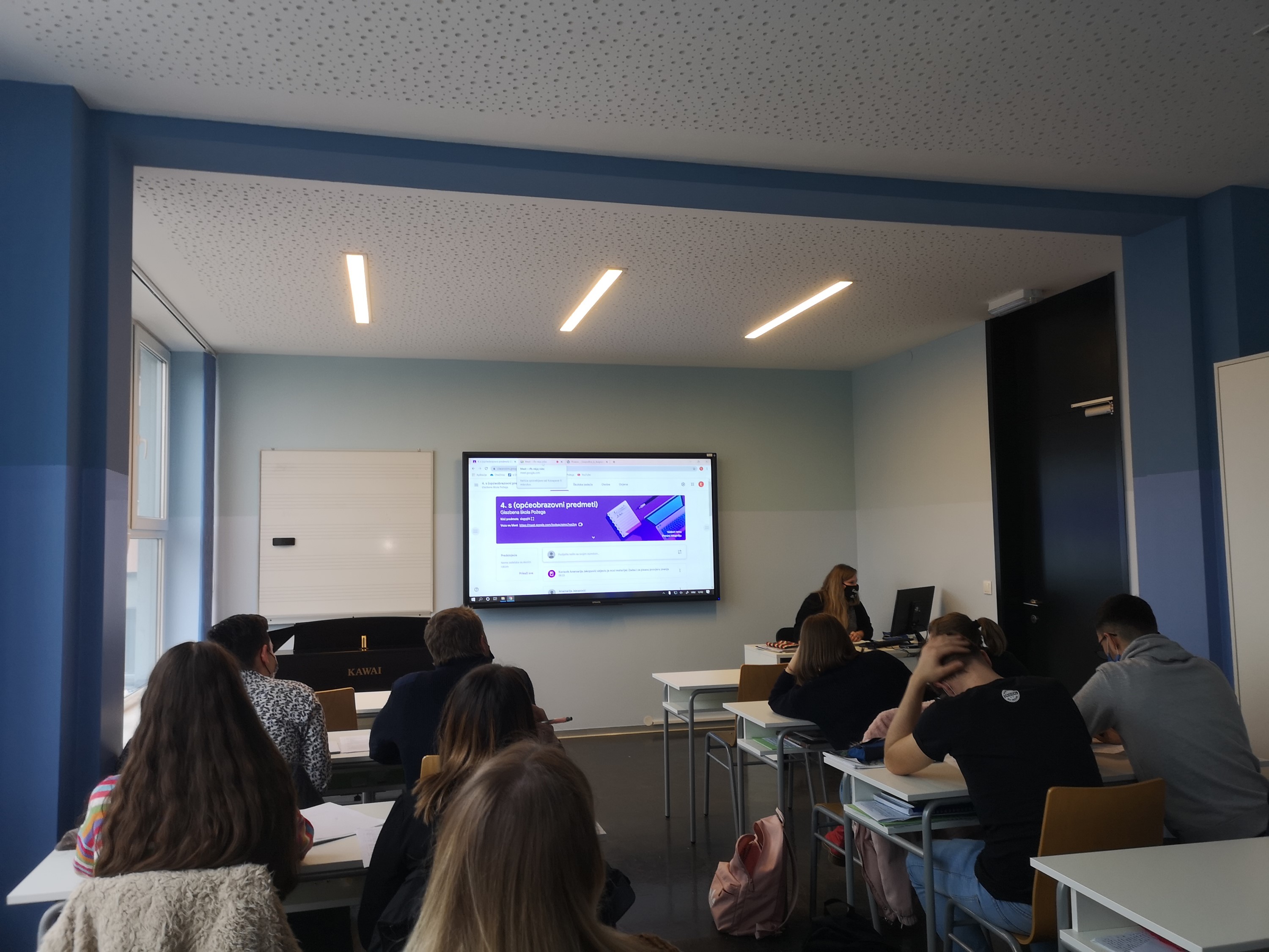 Od ove školske godine nastavu općeobrazovnih predmeta naši srednjoškolci više ne pohađaju u Gimnaziji Požega. Stekli smo uvjete te omogućili našim srednjoškolcima da kompletnu nastavu, i općeobrazovnih i glazbenih predmeta, pohađaju na jednom mjestu, tj. u Glazbenoj školi Požega. Učionice su obogaćene interaktivnim ekranima kako bi se zadovoljili svi uvjeti za izvođenja nastave svih predmeta. Sada se, u slučaju potrebe, nastava na daljinu u našoj Školi organizira na najvećoj mogućoj razini. Nastavnik, u slučaju izrečene mjere samoizolacije, nastavu izvodi od kuće dok ga učenici prate u svojoj učionici.