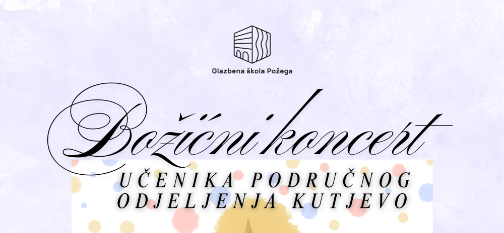 Pozivamo Vas na Božićni koncert učenika Područnog odjeljenja Kutjevo na kojem će nastupiti učenici Glazbene škole Požega. Koncert će biti održan 17. prosinca 2024., u 19:30 sati u Kino dvorani...