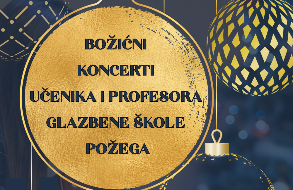 U iščekivanju blagdana, Glazbena škola Požega organizira Božićne koncerte. PRVA VEČER - 17. prosinca Nastupaju:  Harmonikaški orkestar, Predškolski zbor, Dječji zbor "Tintilinići". DRUGA VEČER - 18. prosinca Nastupaju: Gudački orkestar,...