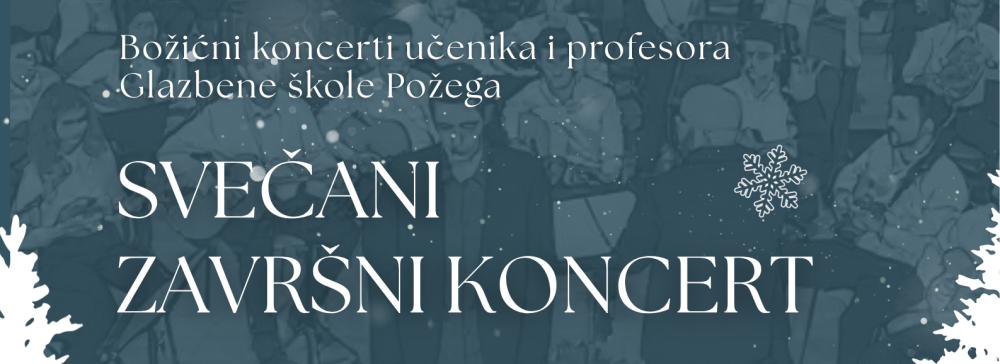 Pozivamo Vas na Svečani završni koncert koja će se održati 23. prosinca 2025. godine u Koncertnoj dvorani Glazbene škole Požega s početkom u 19:30 sati. Očekujemo Vas!